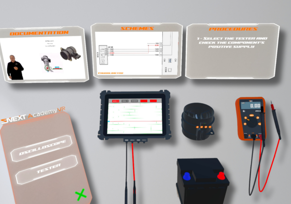 Cursos completos en realidad virtual: diagnosis, desmontaje y montaje en simulaciones 3D. Como una formación presencial, pero sin coches reales y con repeticiones ilimitadas.